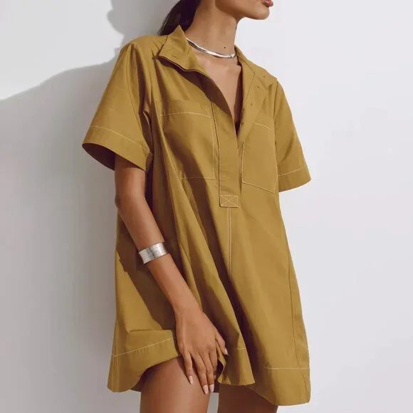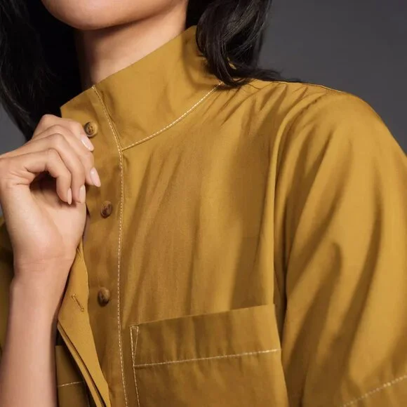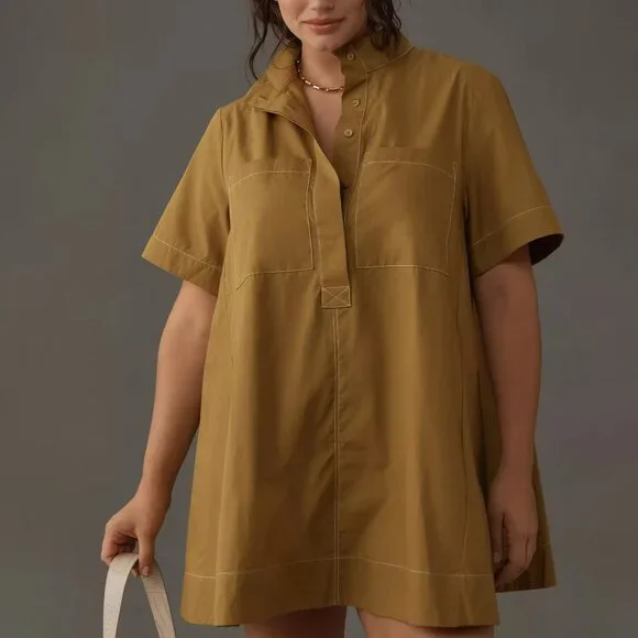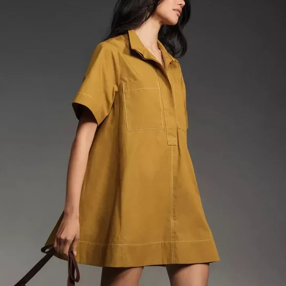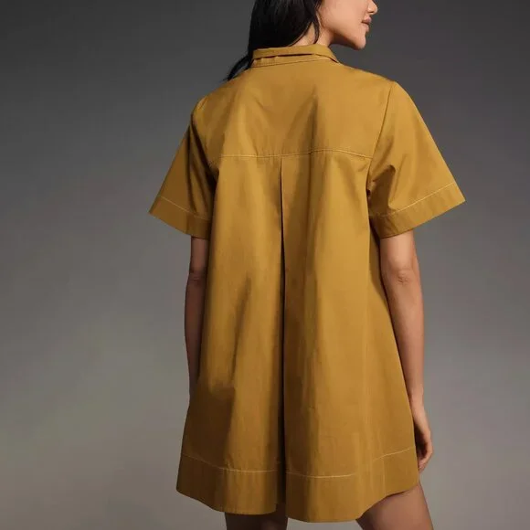 Size S yellow-green Anthropologie The Jeannie Short-Sleeve A-Line Mini Dress by Maeve. Based on the reviews, Jeannie's popularity is in full swing. Featuring contrast top-stitched details, a hidden-button placket, and a crisp, a-line shape that's flattering - and great for all seasons. NWT.- Cotton- Chest patch pockets- Button front- Machine washDimensions- Falls 33.75" from shoulderMaeveThis only-at-Anthro collection is defined by crisp cuts, look-twice details, and playful polish. Here, there, and everywhere, Maeve makes your look.