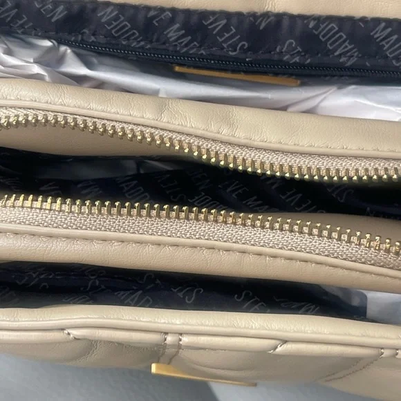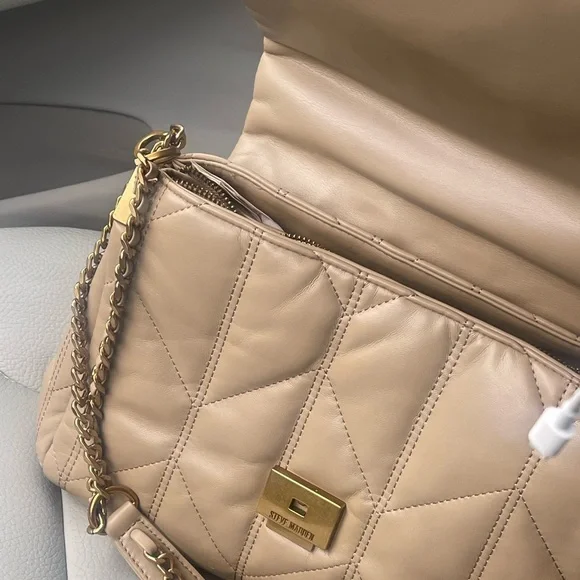 Elevate your style with this chic Steve Madden quilted bag. Featuring a sophisticated tan color, it's perfect for any occasion. The elegant design and gold chain detail add a touch of luxury to your ensemble. New with tags. This bag is so soft and spacious! I purchased and never used it.New to Posh?Use my codeSFILEFILE to get $10 off your first purchase upon signing up for Posh.